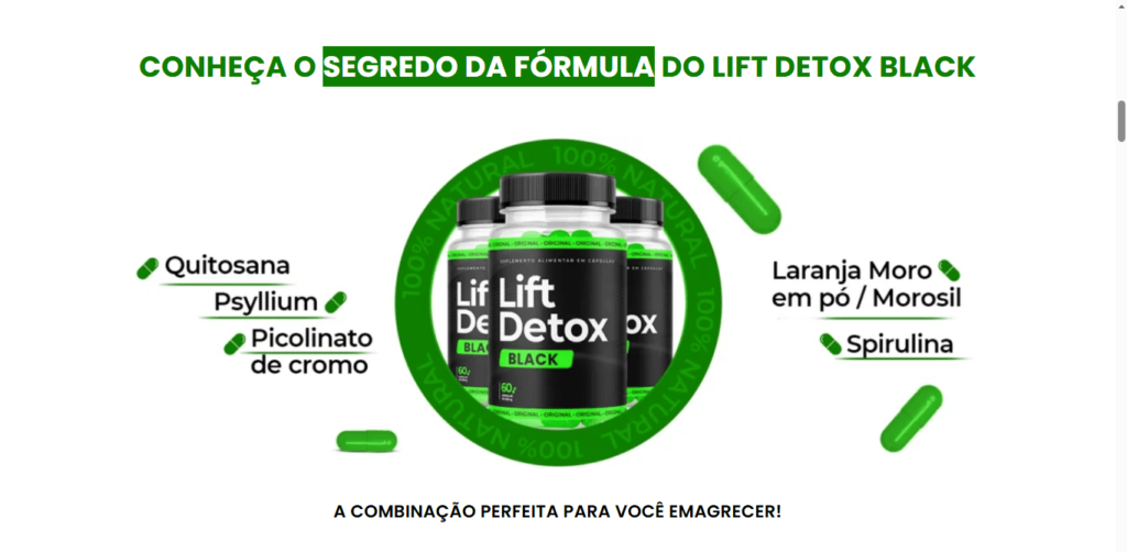 Não é mágica, é ciência: o Lift Detox Black combina o poder da natureza com tecnologia para oferecer resultados reais, rápidos e seguros. Se você já tentou de tudo e não aguenta mais dietas malucas, essa pode ser a virada que estava esperando.